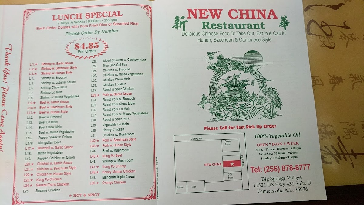 Welcome to New China Guntersville, where delicious flavors meet friendly service! Located at 11521 US-431, Guntersville, AL, this gem specializes in authentic Chinese cuisine, perfect for both quick takeouts and satisfying family meals.
